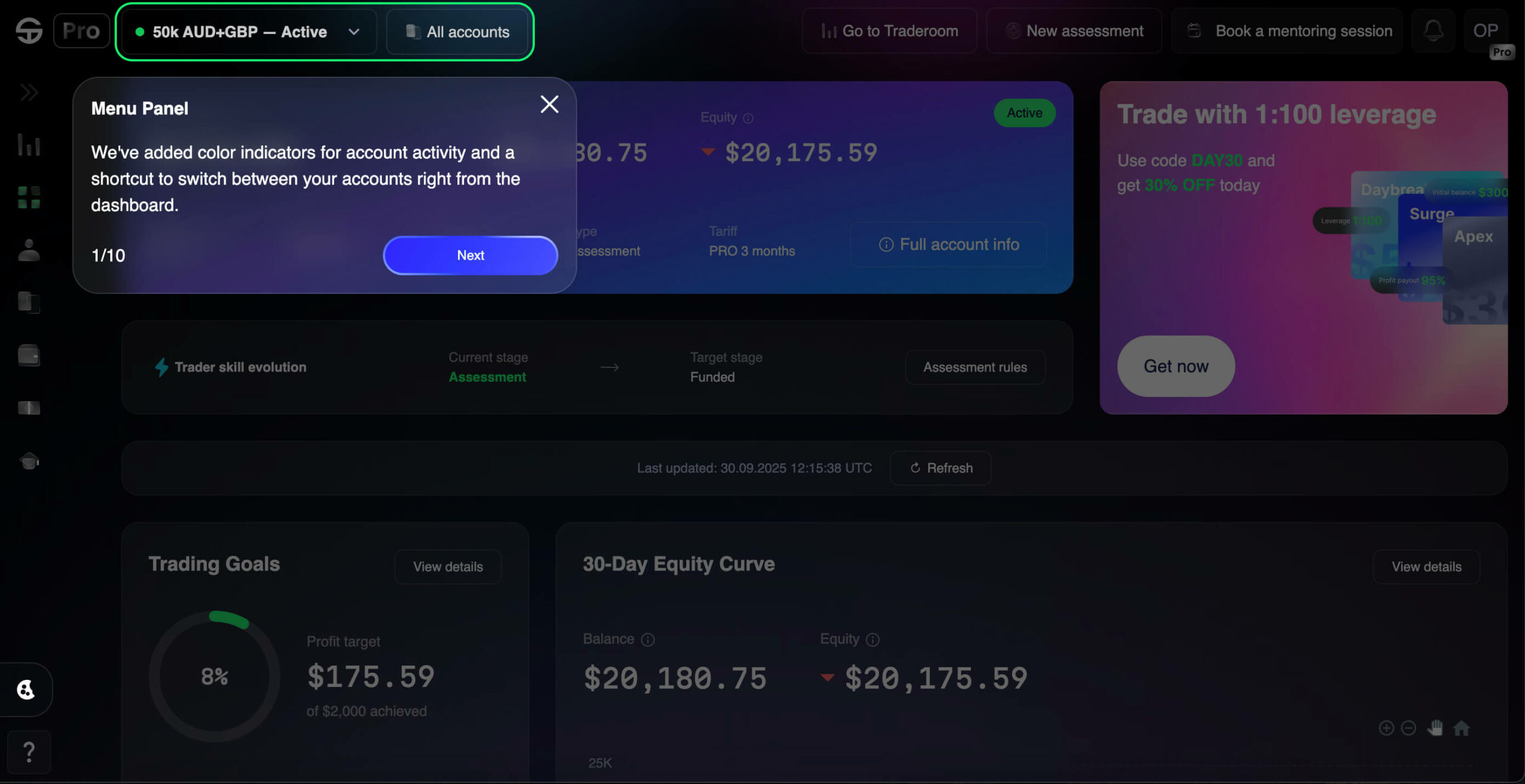 The new dashboard is clean, easy to use, and gives you a clear picture of where you stand. Think of it as your personal trading command center that we built to make your life comfier.